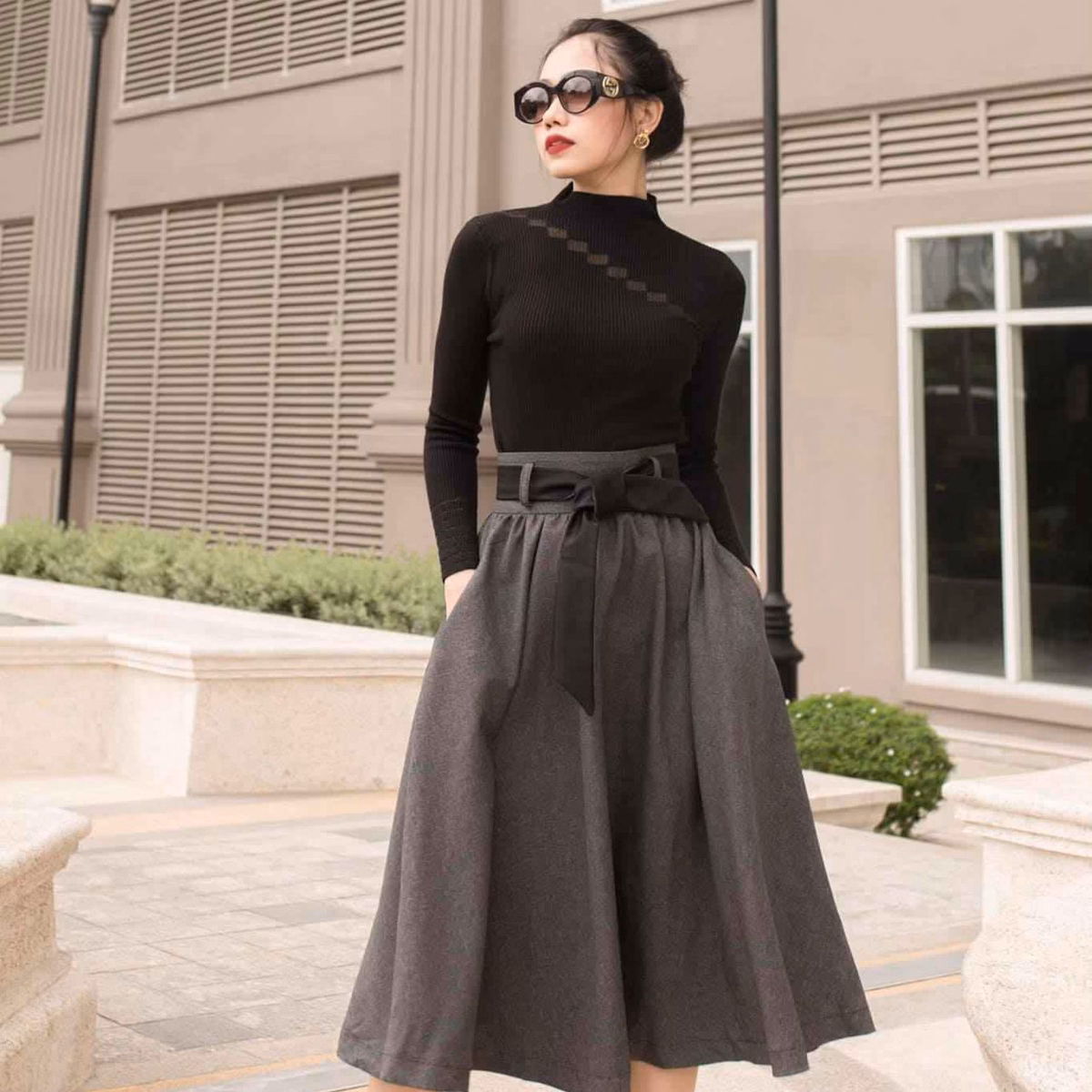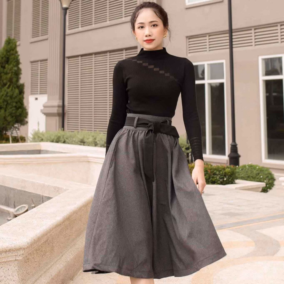 Váy xòe xám Mushroom Lee với chất liệu cotton được dệt kiểu bố, đứng form sang trọng. Phối cùng áo sơ mi hoặc áo croptop phá cách cổ lọ. Phù hợp đi chơi đi làm, đi tiệc sang trọng độc đáo,…