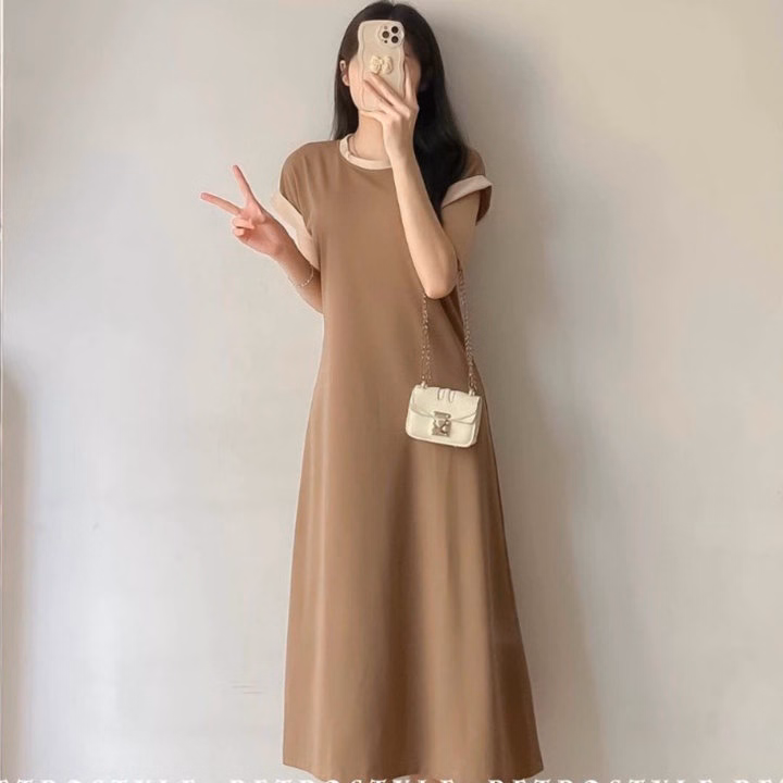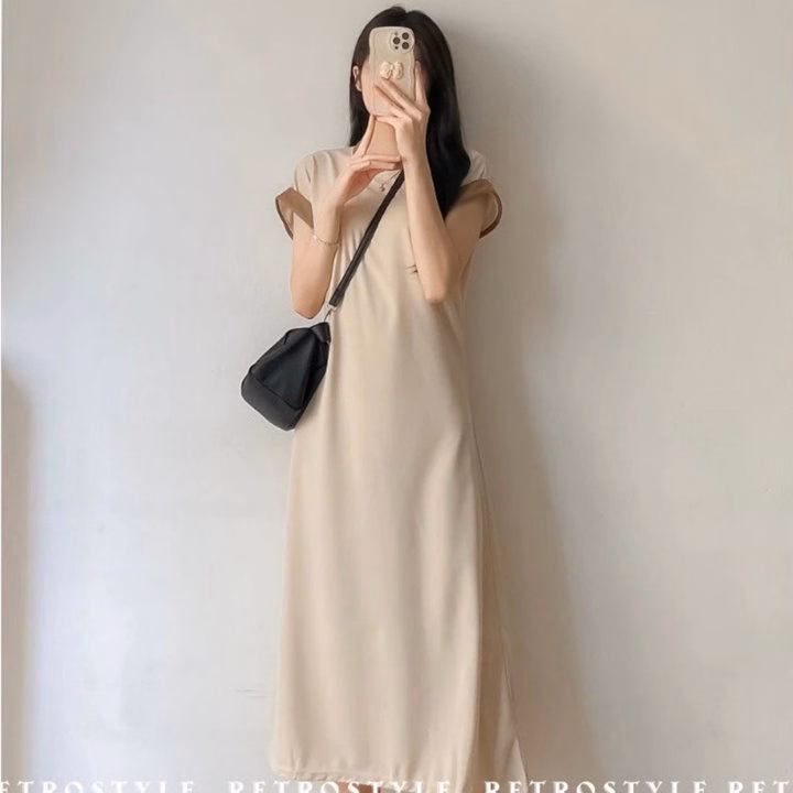 Váy Xuông Dáng Dài Cổ Viền Thun Tăm Nữ