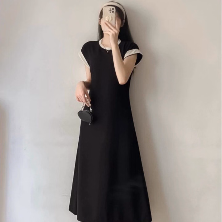 • – Tên Sản phẩm: váy xuông dáng dài cổ viền thun tăm nữ