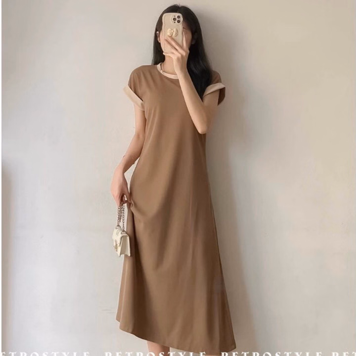 – Tên Sản phẩm: Váy xuông dáng dài phối cổ viền nữ thun tăm hàng quốc siêu xinh