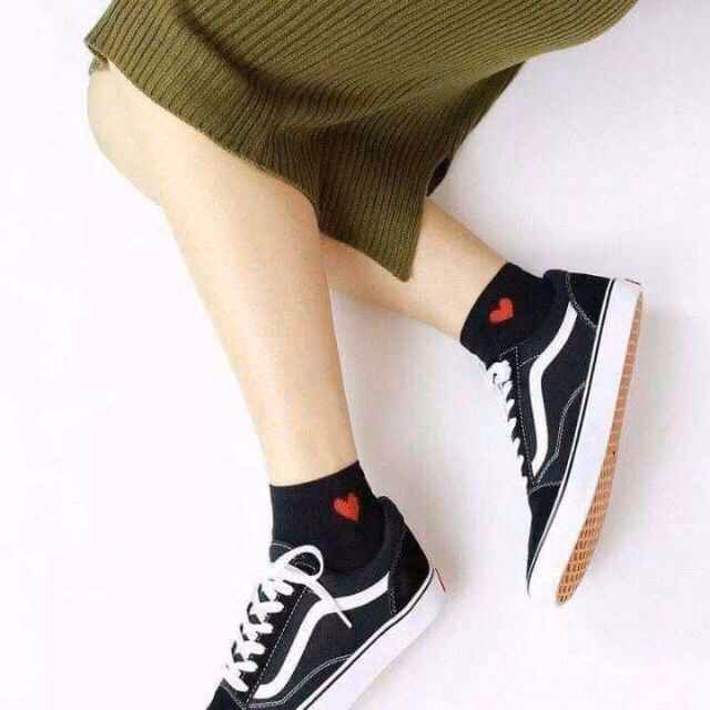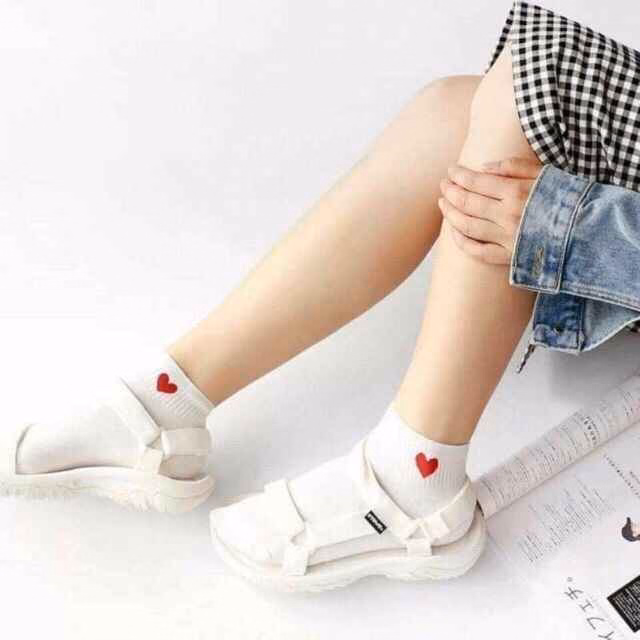 Tất ngắn cổ với họa tiết trái tim màu đỏ ở cổ.
