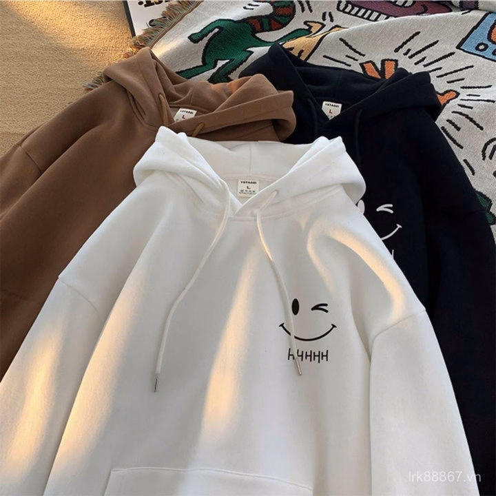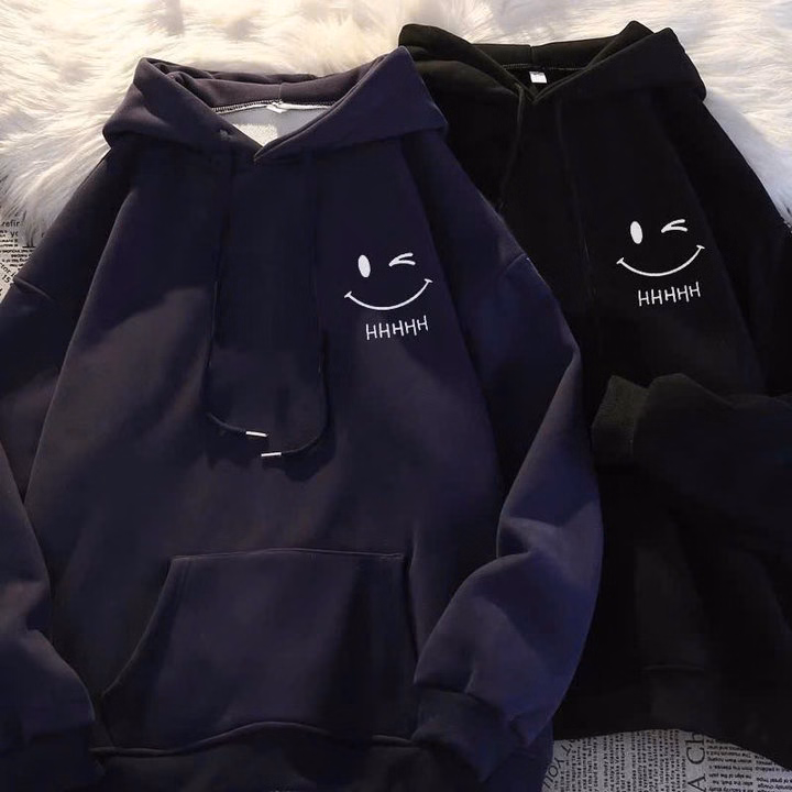 009 Áo Khoác Nỉ Unisex In Hình Mặt Cười Form Rộng
