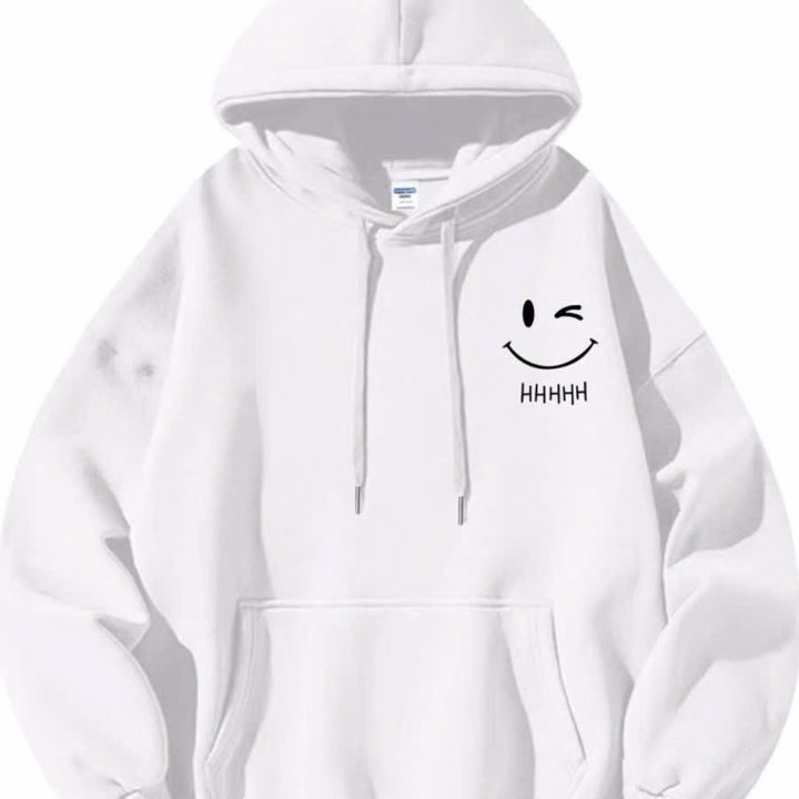 Xả Áo Hoodie Mặt Cười Trắng Mũ 2 Lớp