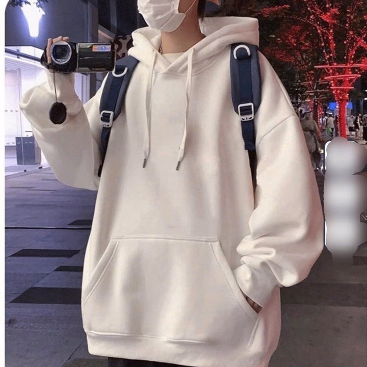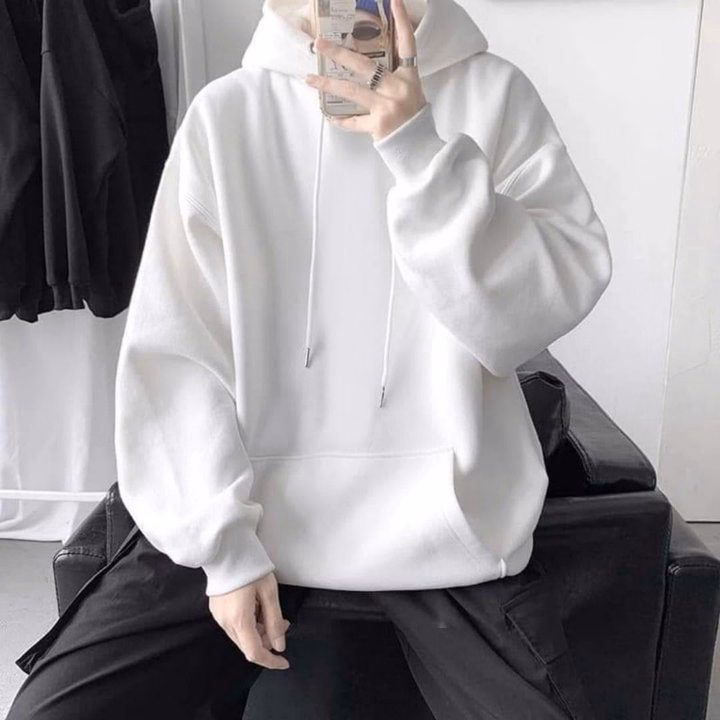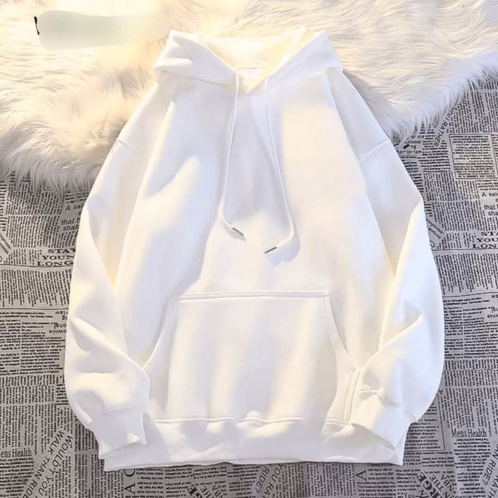 Xả Áo Hoodie Mũ 2 Lớp Form Rộng Màu Trắng
