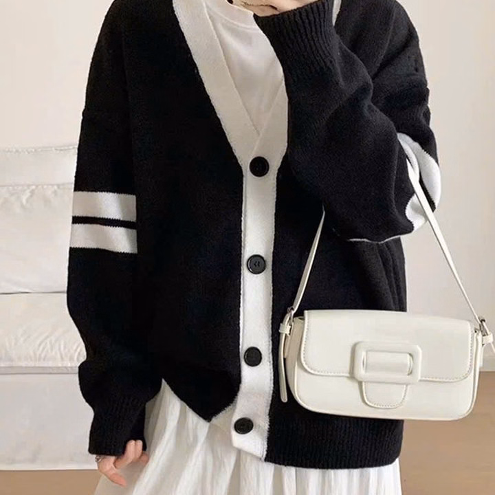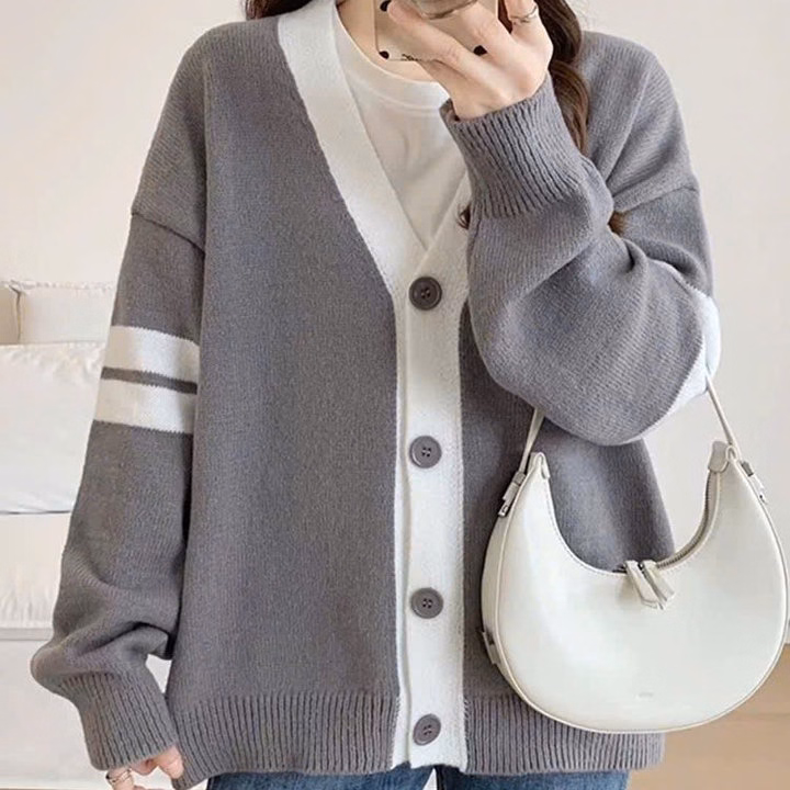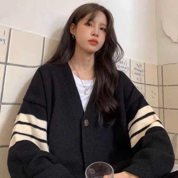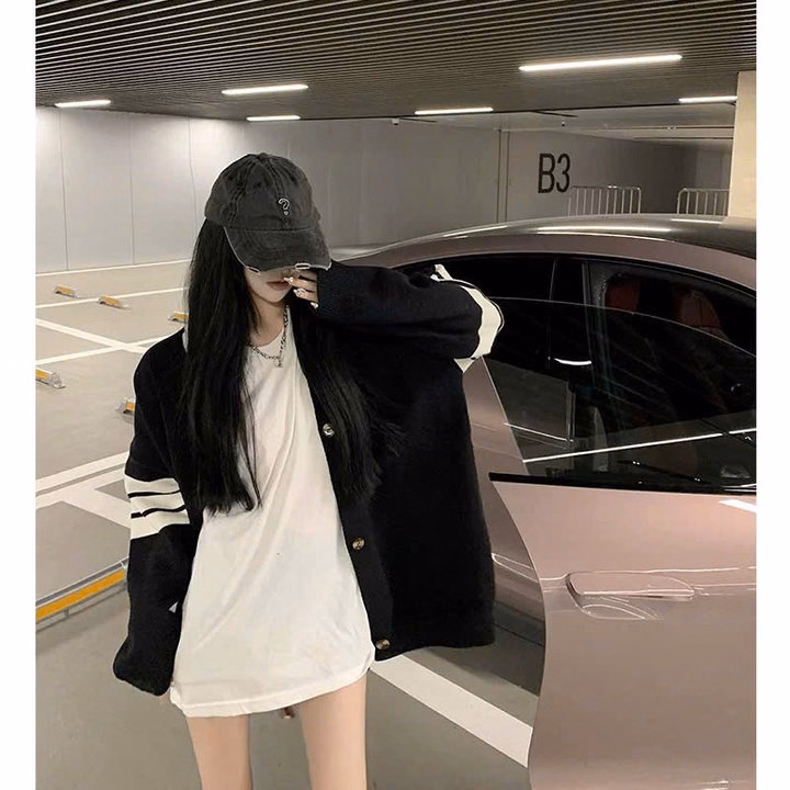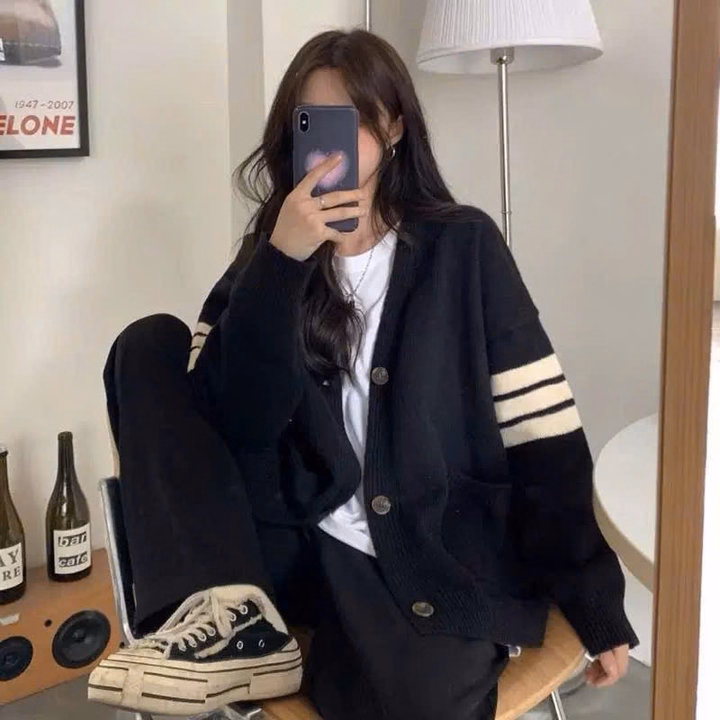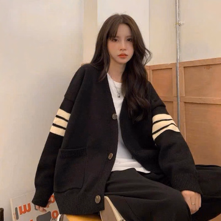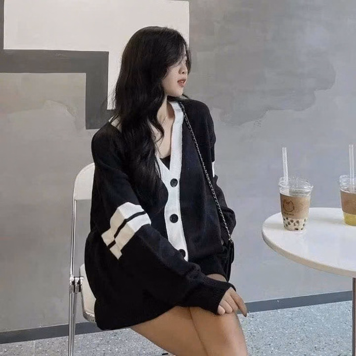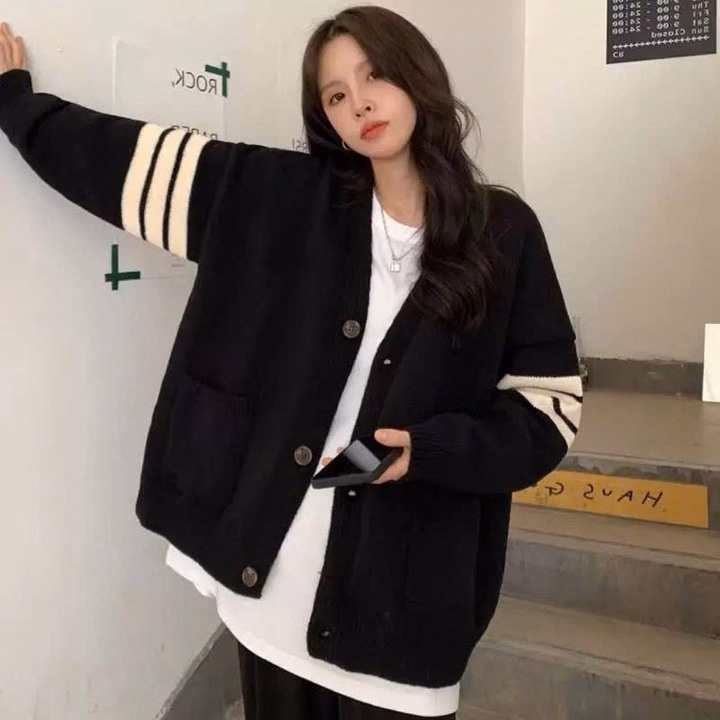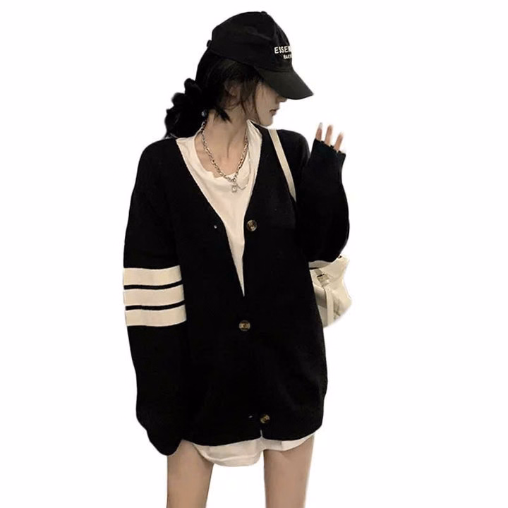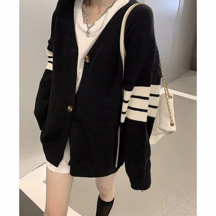Xả Áo Khoác Nỉ Bông Carigan Kẻ 4 Sọc Ở Tay Form To Rộng Hót Trend