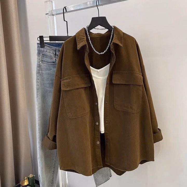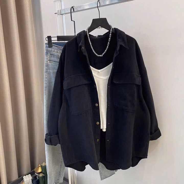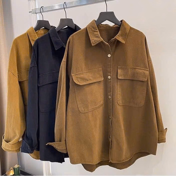 Xả Áo Sơ Mi Nhung Tăm Form Rộng